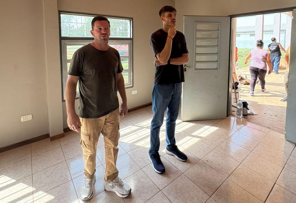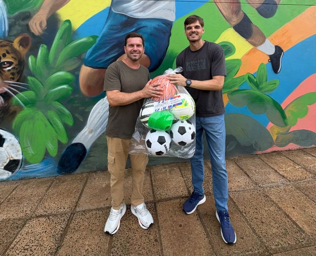 Además, Steinhorst recorrió las instalaciones del polideportivo que actualmente se encuentran en proceso de refacción, especialmente en la zona de vestuarios. Durante la visita, entregó insumos deportivos como pelotas y materiales para las actividades cotidianas de los profesores de educación física.