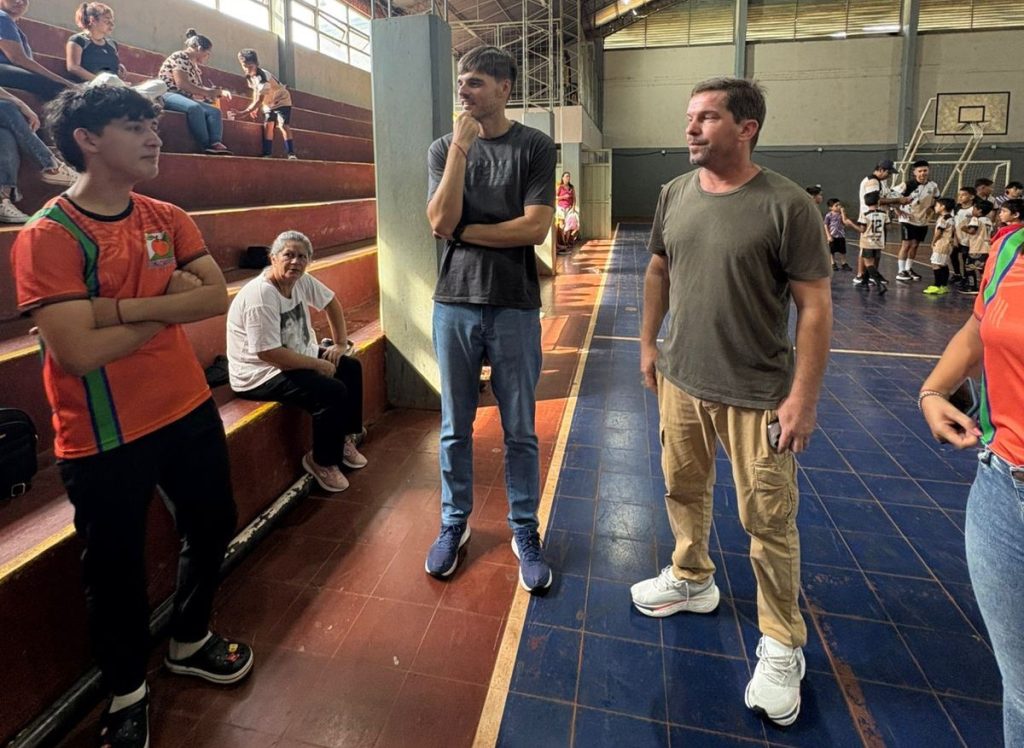 Posteriormente, se trasladaron al polideportivo municipal, donde se encontraron con jóvenes que practican diversas disciplinas como newcom, fútbol y gimnasia artística. Allí, el ministro saludó a los profesores y deportistas en un clima ameno y de entusiasmo.